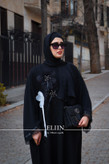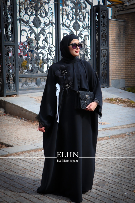 عبای زنانه مجلسی عبای گلسان کرپ اندونزی گلهای برجسته کاردست جلو بسته